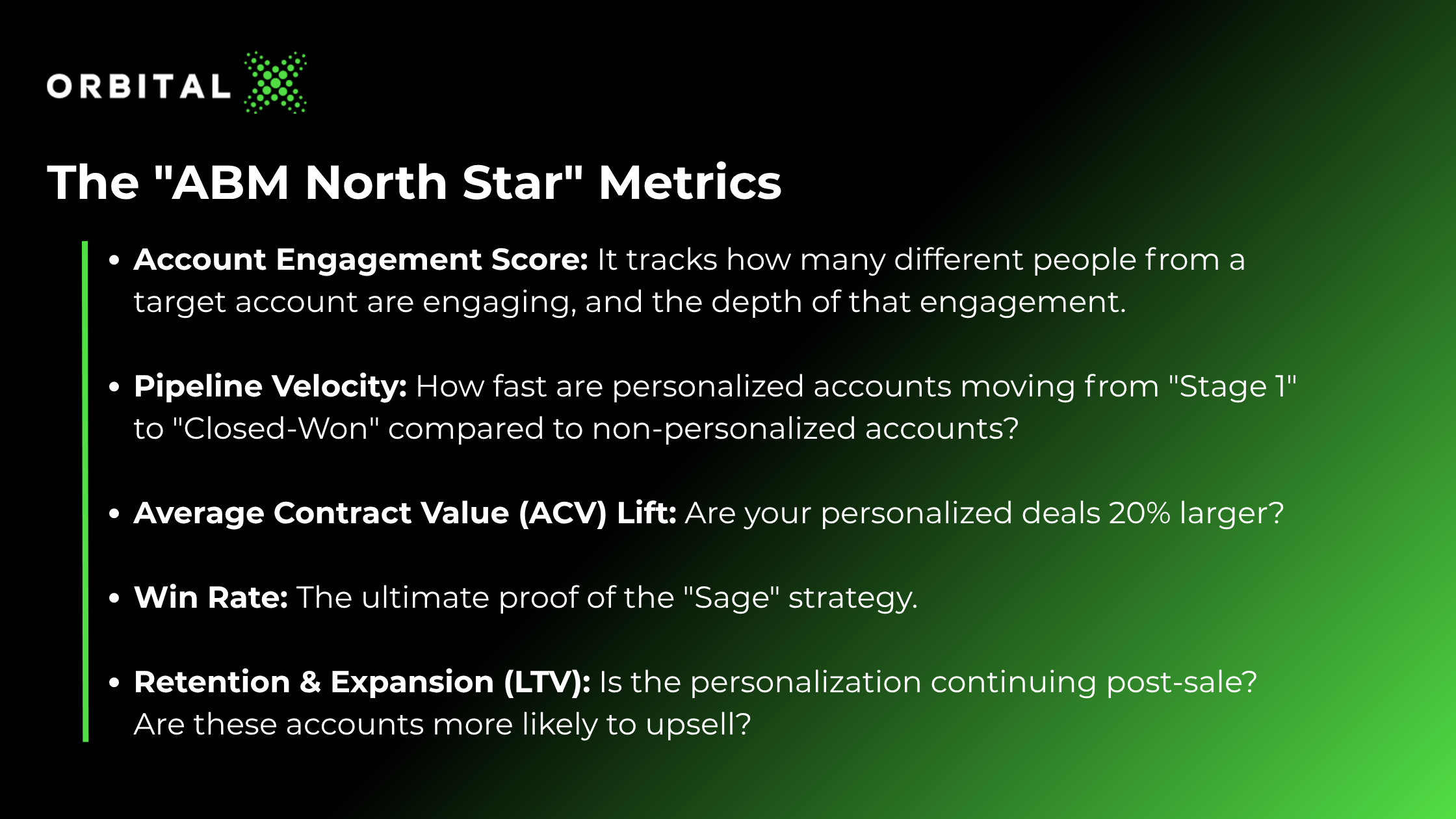 The best approach is an AI-human hybrid model. And with the help of a demand-gen agency like OrbitalX, you can build systematic ABM personalization without overhauling your entire department overnight.